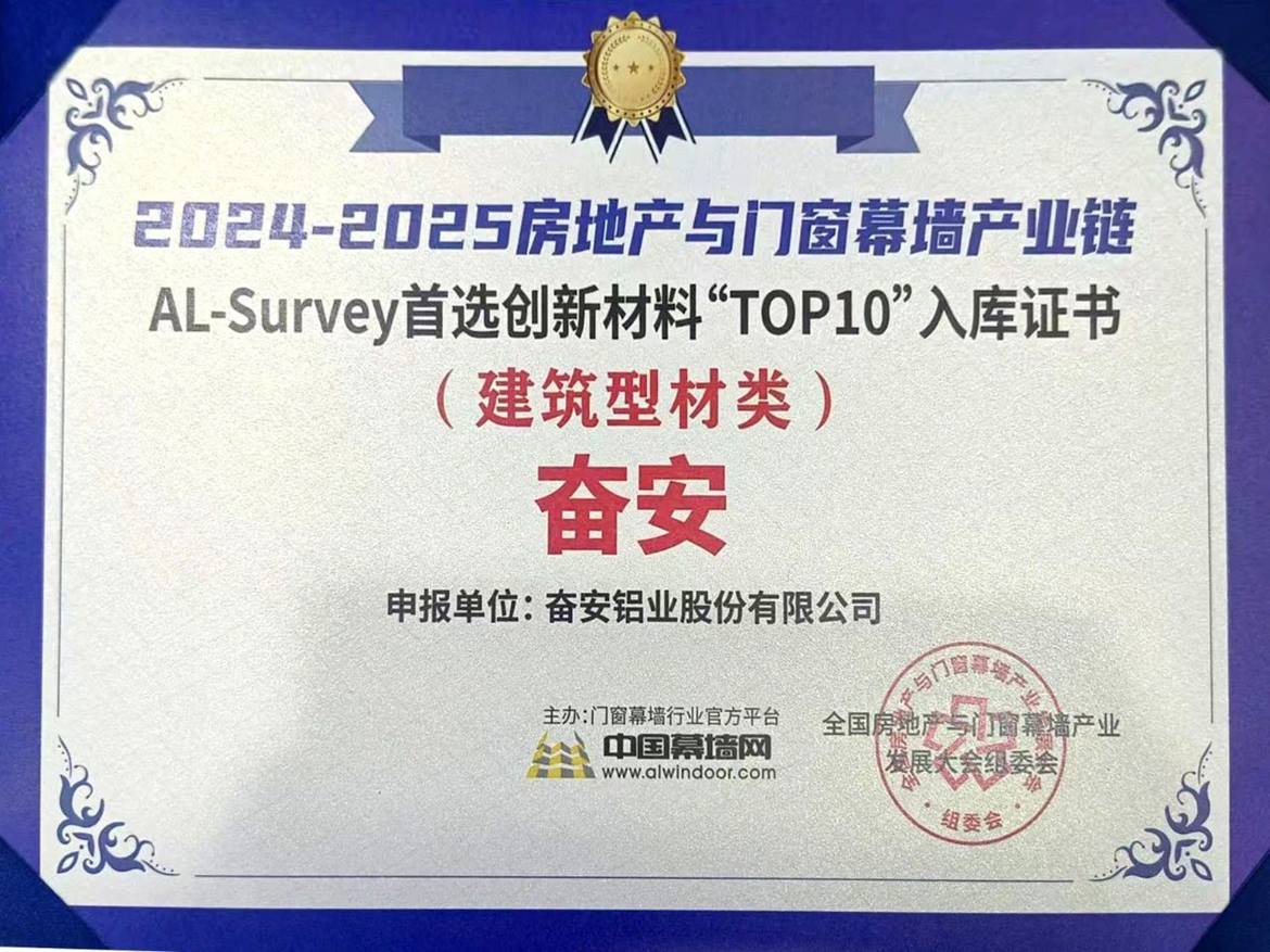 Состоялись 31-я ежегодная Национальная конференция производителей алюминиевых дверей, окон и навесных фасадов, а также Национальная конференция по развитию рынка недвижимости и производства дверей, окон и навесных фасадов в 2025 году. FOEN Алюминий был приглашен к участию. Благодаря своему выдающемуся качеству продукции и превосходному обслуживанию бренда FOEN Aluminum был удостоен звания «10 лучших предпочитаемых брендов для строительных профилей» и был включен в список «AL-Survey Top 10 Preferred Innovative Materials».
